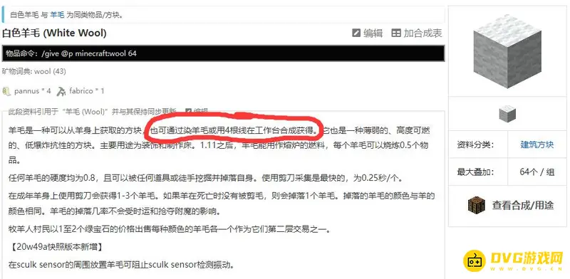 2,然后就会发现只有线变成羊毛的说明,没有羊毛变成线的说明,所以羊毛是不能变成线的。