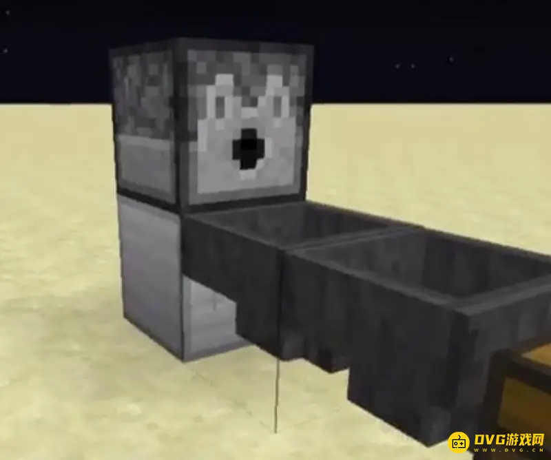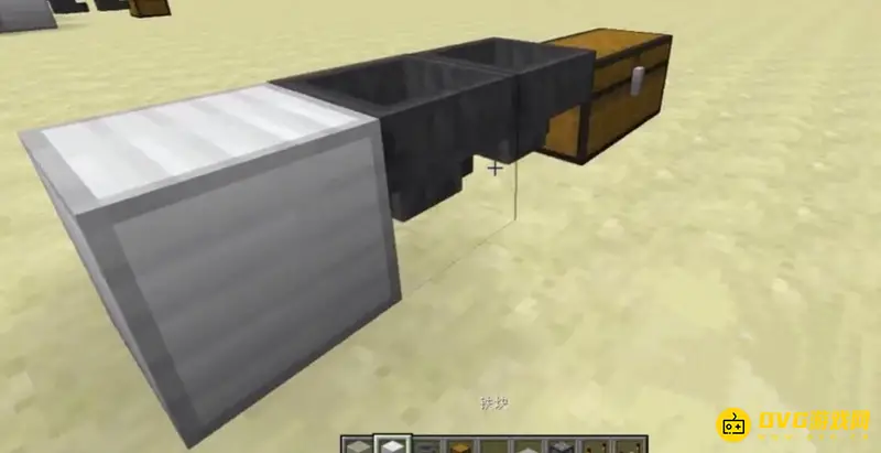 1、先放两个箱子和两个漏斗,在漏斗后面放上一个方块。