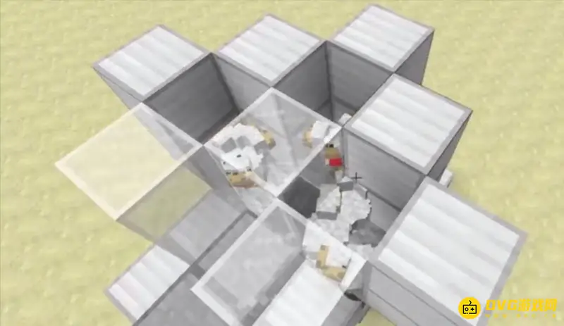 7、放地毯的3个漏斗周围,围上方块和玻璃
