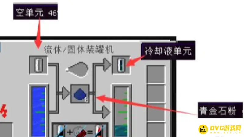 5、然后再在下图的位置放上【空单元】,如下图的位置放至少八块青金石粉末。最后在右侧得到【冷却水单元】。