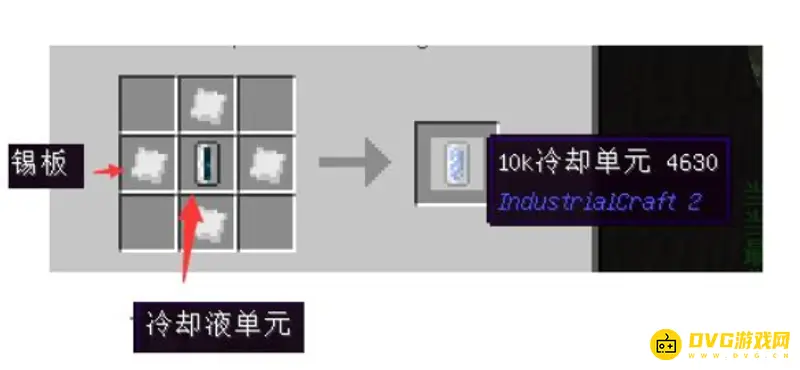 6、关于10K冷却单元,我们可以使用上面合成的【冷却液单元】与四块【锡板】合成得到一个10K冷却单元!