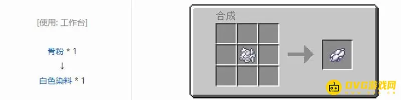 1,首先我们需要制作白色染料,用骨粉在工作台里可以直接变成白色染料。