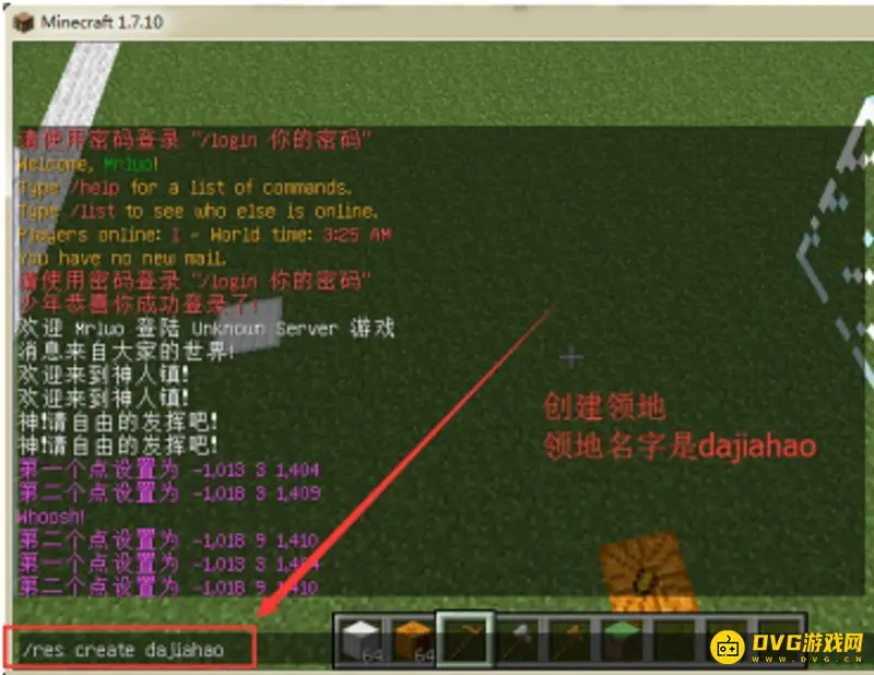 共有5个领地指令,分别是设置领地/res create 123、移除领地/res remove 123、领地内权限设置/res set 123 flags true/false、设置子空间/res subzone 123 abc、设置领地信息/res message 123 enter(leave) ABC,123是领地名,不填则默认为当前所处领地。