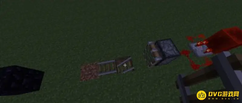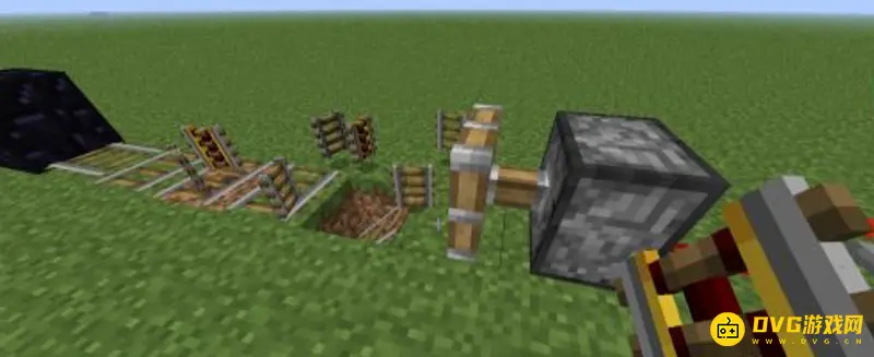 3.红石摆好后左面放上粘性活塞隔一格挖一下个方块。