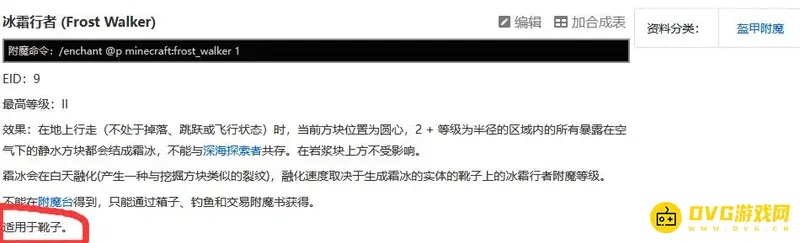鞋子可以附魔火焰保护,摔落保护,爆炸保护,弹射物保护,冰霜行者,绑定诅咒,灵魂疾行,荆棘和深海探索者。