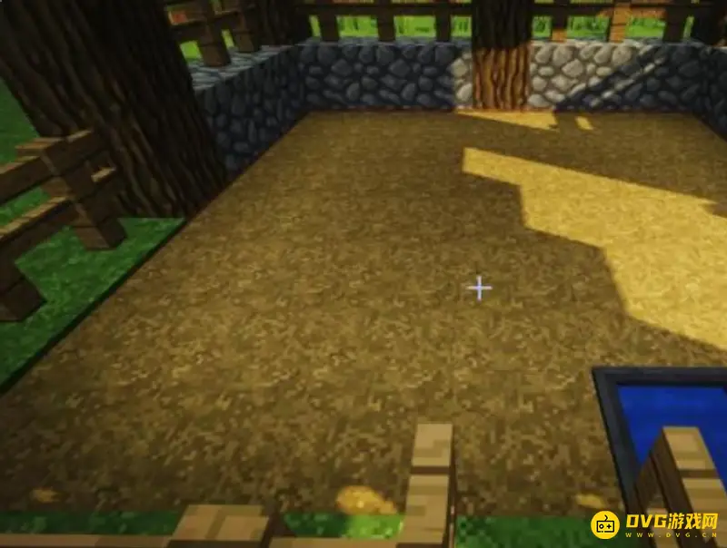 4、把地面用铲子给铲平,在门口处用炼药锅放置好,在锅里面倒上水。再用栅栏门给链接上,这样猪圈棚子就建造完毕。