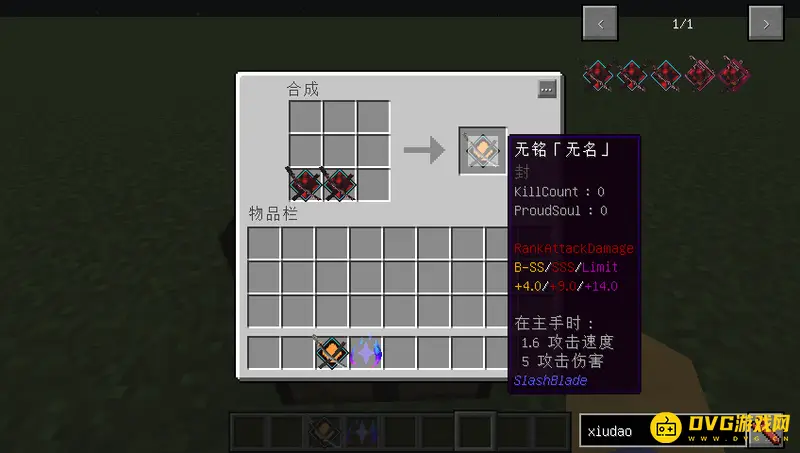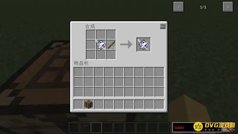 7、合成。拔刀剑在工作台可以通过合成改变位置,只需要拔刀剑与木棍合成即可,注意位置。