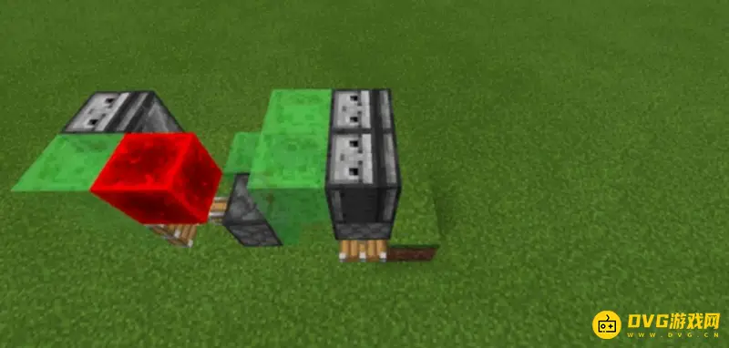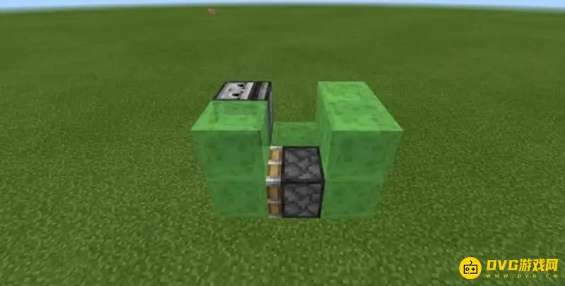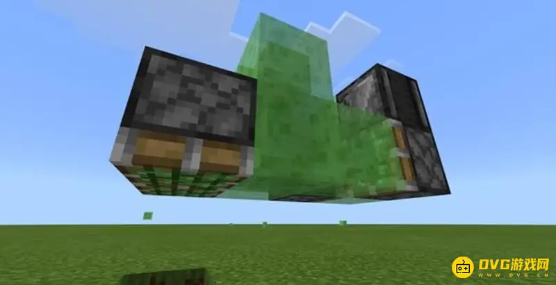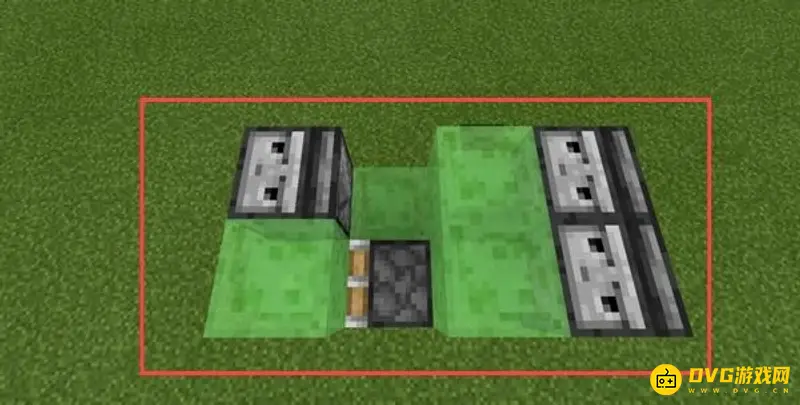 4、在最右边底层的粘液块旁,摆放两个粘性活塞