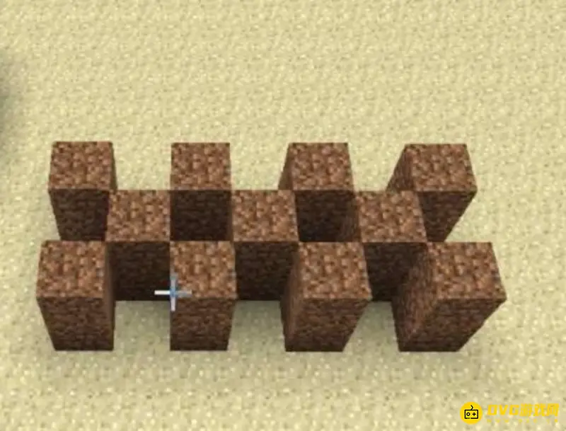 1.首先先用泥土做一个高2格高的斜向间隔1的墙。