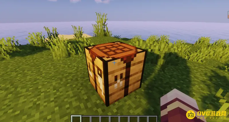 1、玩家进入游戏地图中,首先将工作台放置在地面,然后对着工作台点击右键。