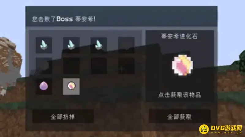 2、然后将BOSS蒂安希击败之后可以获得BOSS身上的一些东西,如下图所示: