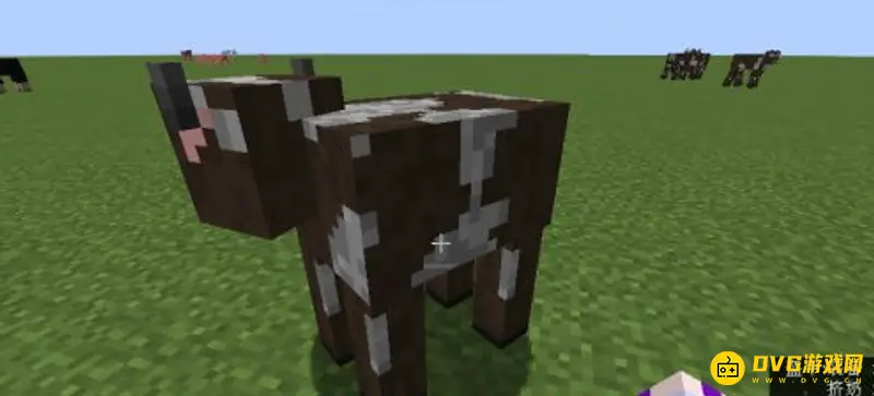 3.最后找到牛,拿着我们做好的桶右键就可以获得一桶牛奶了(对着蘑菇牛右键也行)。