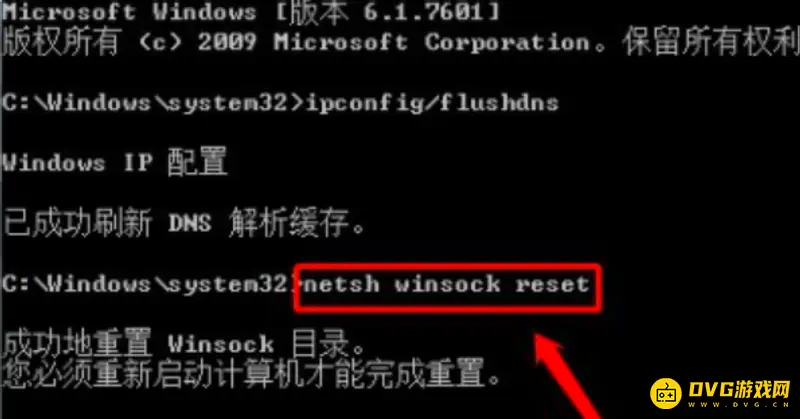 4、再输入 netsh winsock reset 回车,重启计算机,就可以解决无法解析主机名的问题了。