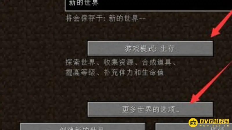 2、然后选择生存模式,再选择更多世界选项,要把作弊指令打开。
