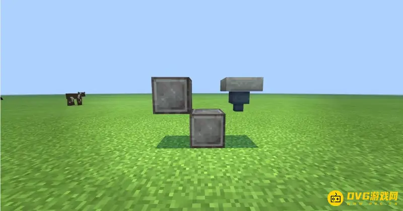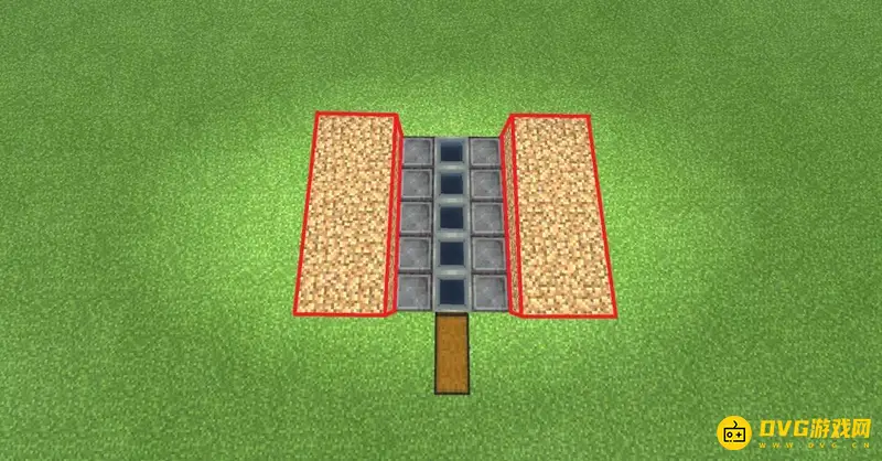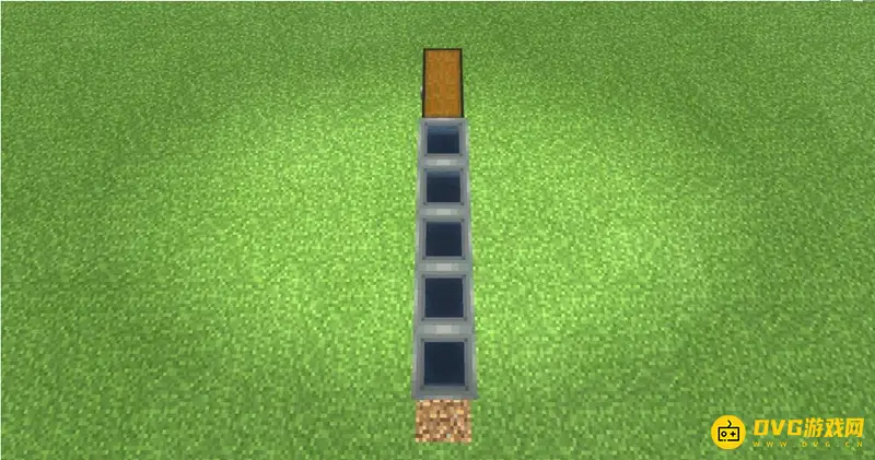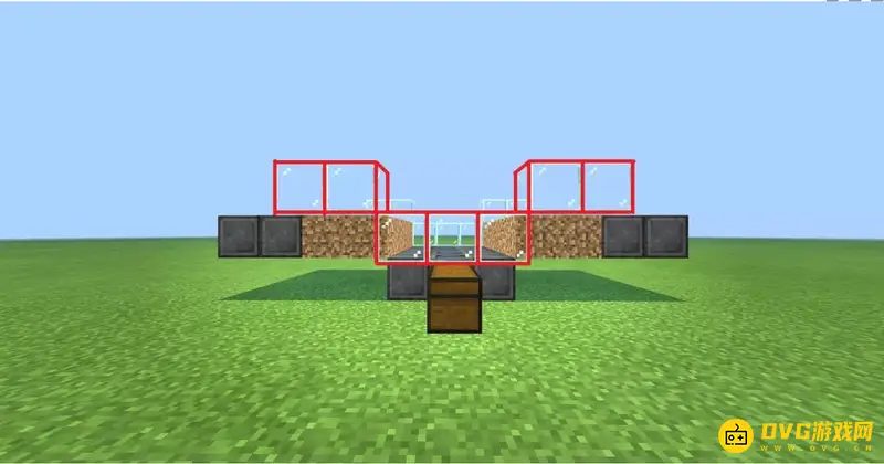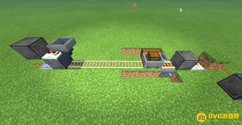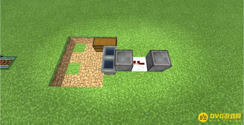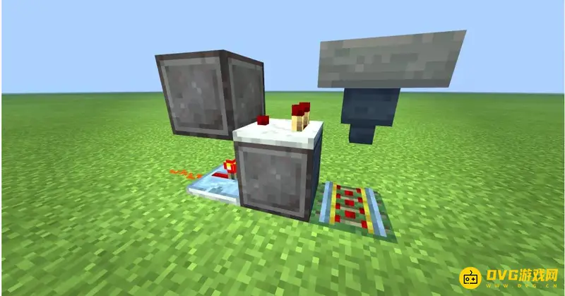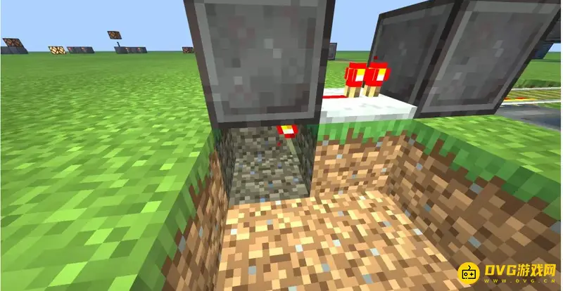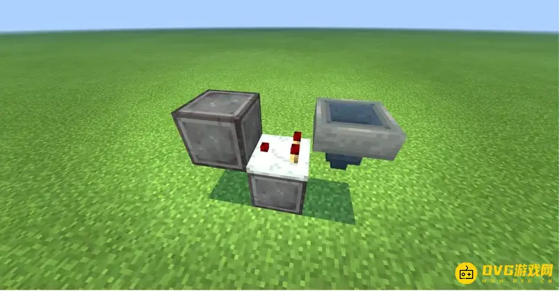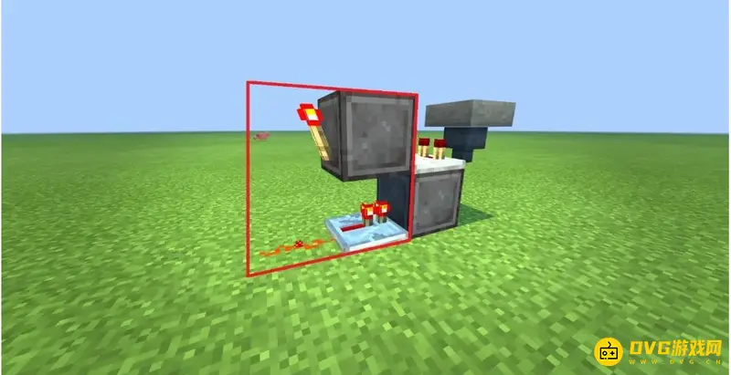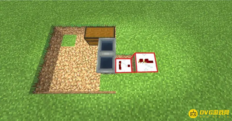 8、如图所示在比较器上方和中继器后面,摆放两个普通方块。