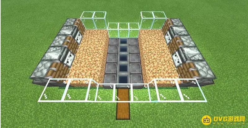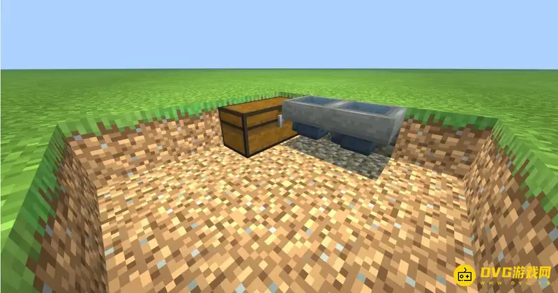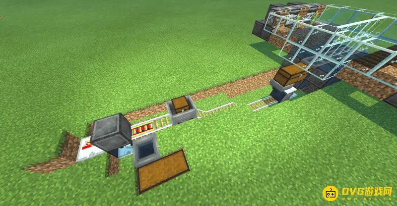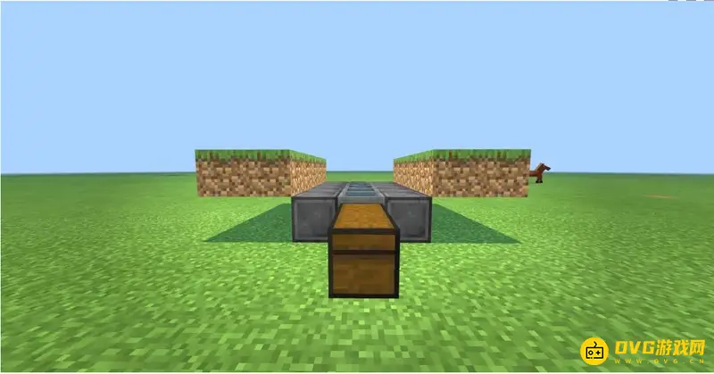 1、一开始我们先按照下图摆放一个大箱子和相连接的五个漏斗(记得最终要连接到箱子噢~)