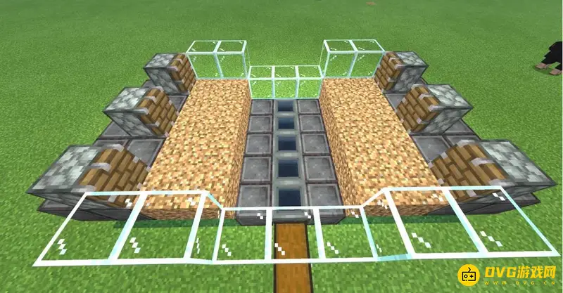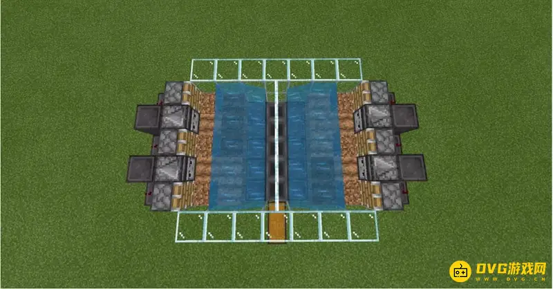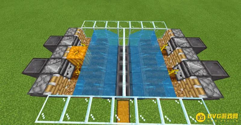 11、别忘了在每个活塞的背后摆放红石粉噢!现在就可以享受全自动采集南瓜啦~