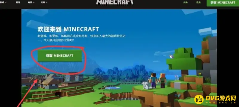 1.首先进入我的世界游戏的官网,然后在界面当中点击获取,如图所示。