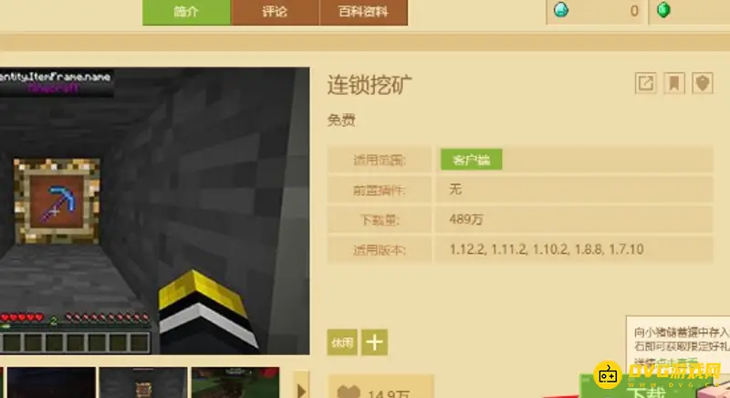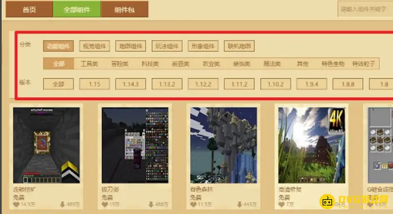 2.下载组件需要支付绿宝石,选择一个你感兴趣的组件,点击打开简介面板,查看这个组件的适用游戏版本,如果有你游戏的版本就可以点击右侧“下载了。