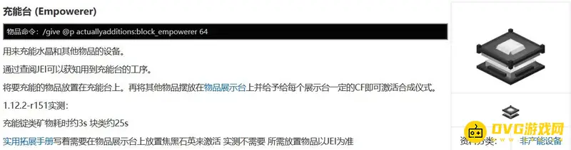 将要充能的物品放置在充能台上。再将其他物品摆放在物品展示台上并给予给每个展示台一定的CF即可激活合成仪式。可以用来用来充能水晶和其他物品的设备。