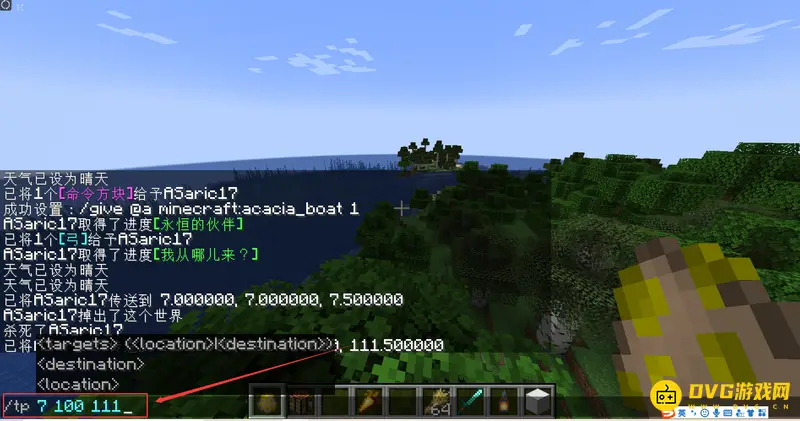 【我的世界】玩家可以通过输入指令【/tp x y z】来传送至指定位置,xyz为空间坐标。例如下图:
