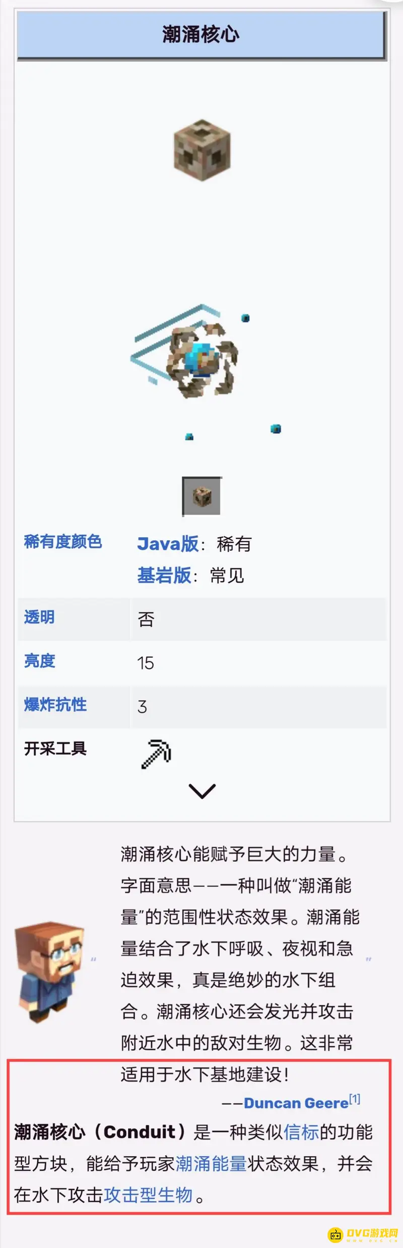 潮涌核心是一种类似信标的功能型方块,能给予玩家潮涌能量状态效果,并会在水下攻击攻击型生物。主要用于固定位置的深海场地,用于给予玩家“潮涌能量”效果,有利于玩家探索海洋以及搜寻海底遗迹。