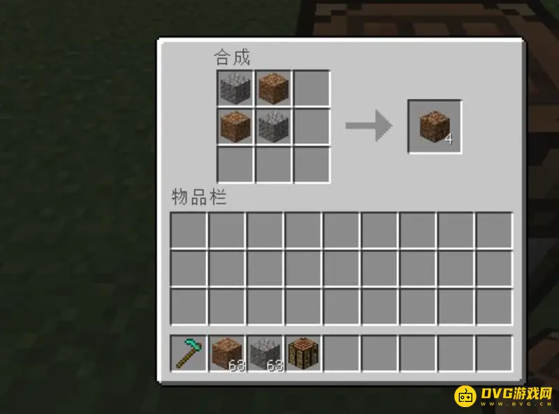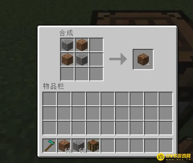2、拿出你的砂土放在地上,拿出锄头右击砂土,就会获得四个泥土,然后合成八个砂土。