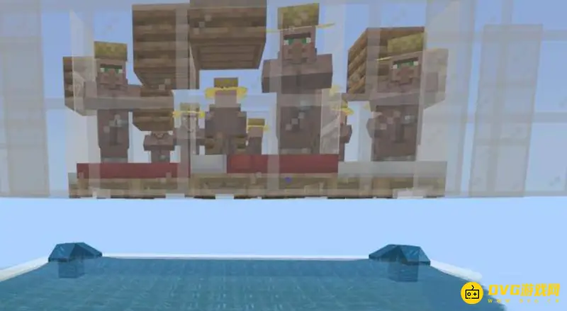 5.这时候要注意床的方向可以随意摆放,在小平台周围提高两格防止村民跳出,再将顶部封住,床下面的小平台方块拆除。
