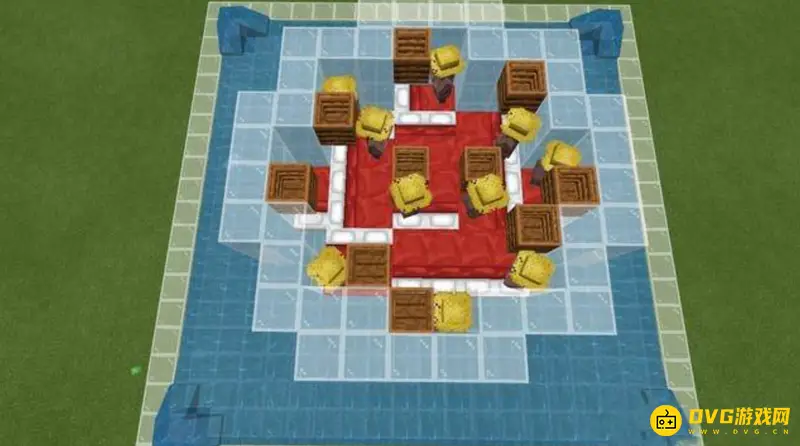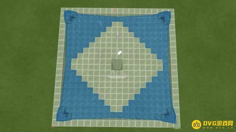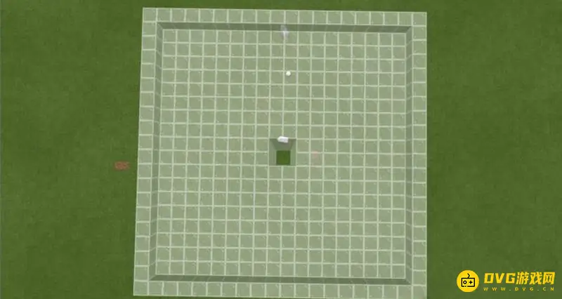 2.接着向外延伸9格,每边均为9格长(水流最远的距离是8格,最外一格做围墙),即制作成20×20的平台,中间空4个方块。然后将四周提高一格。