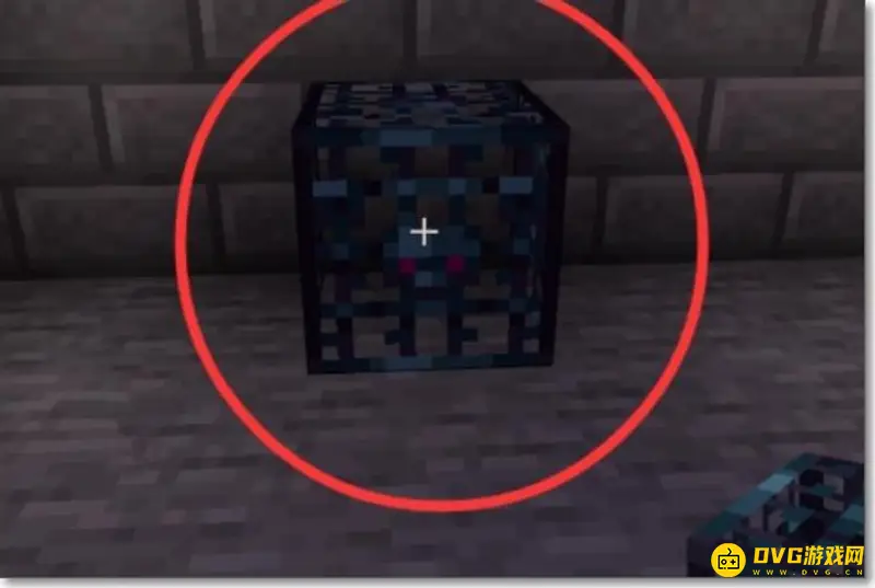 2、然后把刷怪笼放在地上,这时是没有东西可以出来的。接下来,将你的视角(十字准心)对准你需要放置刷怪笼的地方,你会看到你所指向的方块被框框高亮显示出来。