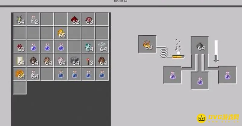 4、将火药放到配置好的虚弱药水酿造台中,喷溅型虚弱药水就合成了。