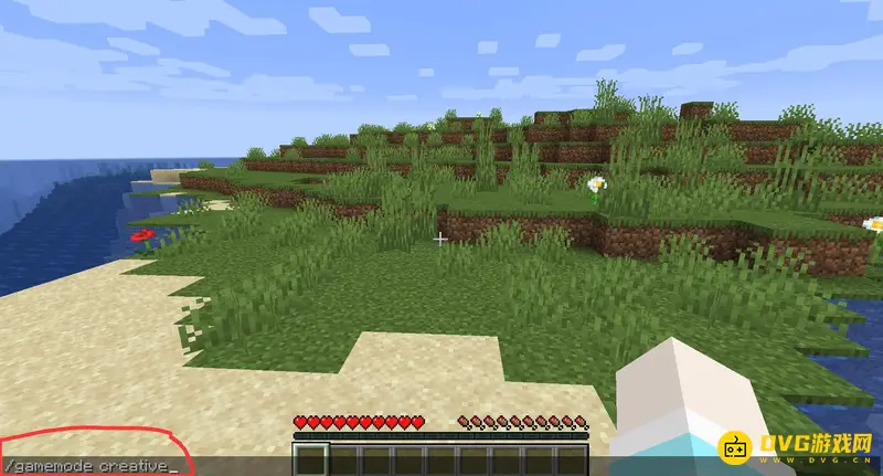 2,然后按下T按键,打开聊天框,输入/gamemode creative。