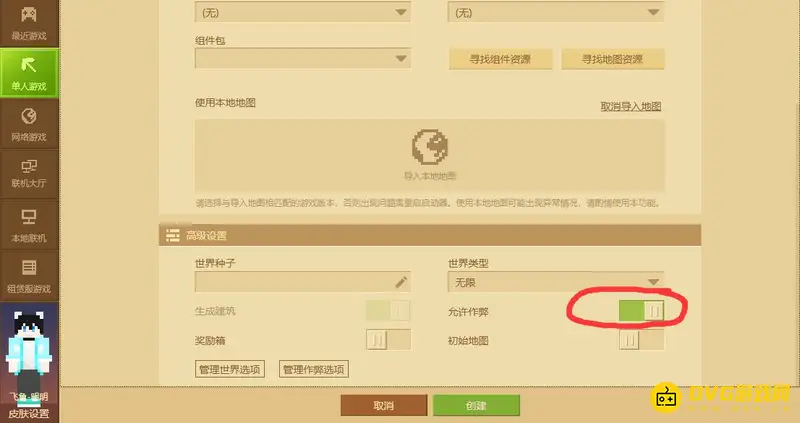 1,首先我们需要在创建地图前,把允许作弊给打开。