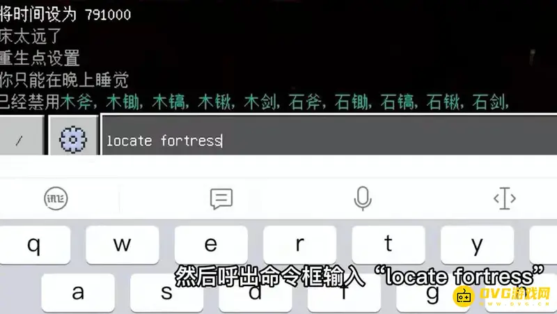 然后呼出命令框输入“locate fortress”,可以找到地狱堡垒的坐标。