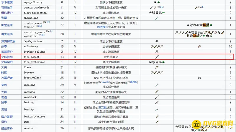 第二个是火焰附魔。附魔之后,用来攻击独对生物,可以使其着火,非常好用。