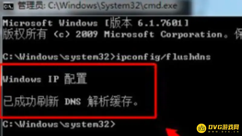 2、在管理员的窗口,输入ipconfig /flushdns回车;