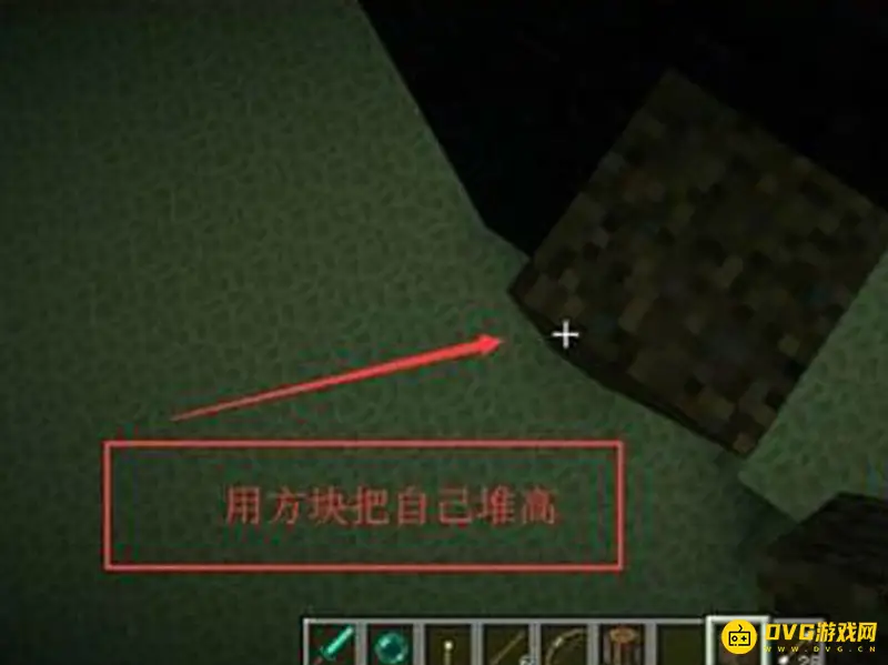 1、进入到末地之后,找到那黑色的柱子,靠近柱子1格的样子,把自己堆高。