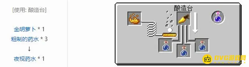 2,接着再把上方的下界疣换成金胡萝卜,就可以酿造成夜视药水了。