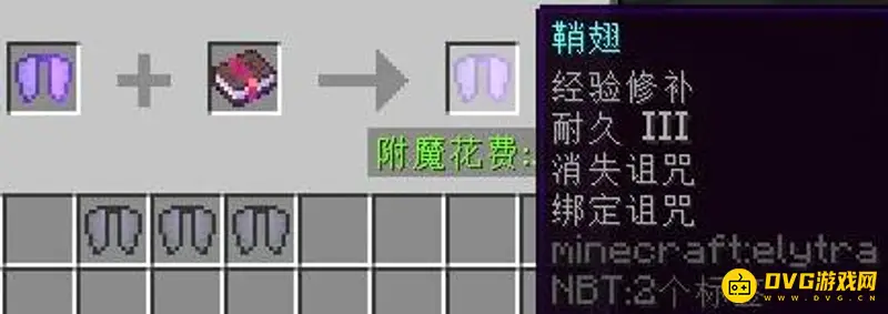 首先我们搜索并进入我的世界鞘翅的相关说明,然后往下滑动,就可以发现我的世界鞘翅能附魔耐久,经验修补,消失诅咒和绑定诅咒。