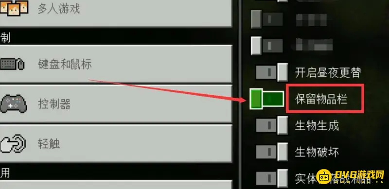 4、需要注意的是,如果我们开启了死亡不掉落物品设置,死掉后也无法解除身上的绑定诅咒(而游戏中,解除绑定诅咒只有一个方法,就是死掉然后重生)