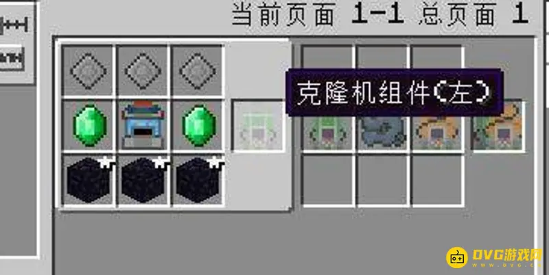 克隆机需要三个零件合成,分别是克隆机组件(左)、克隆机组件连接线(中)、克隆机组件(右)。