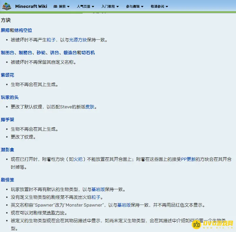 屏障和结构空位:被破坏时不再产生粒子,以与光源方块保持一致。