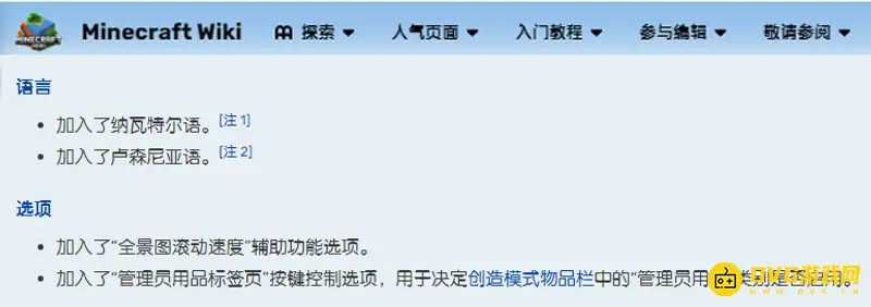 选项中加入了“全景图滚动速度”辅助功能选项。加入了“管理员用品标签页”按键控制选项,用于决定创造模式物品栏中的“管理员用品”类别是否启用。