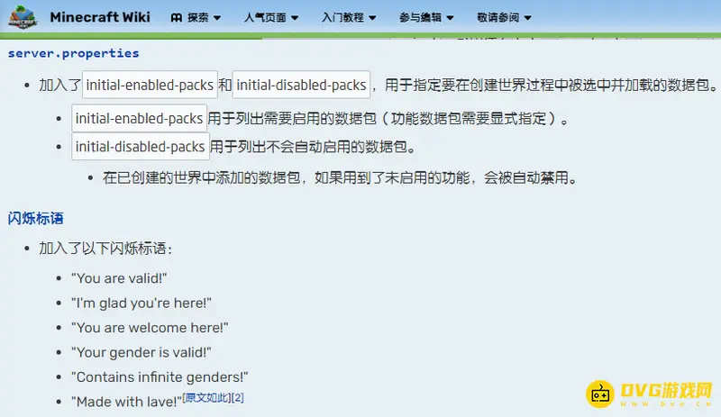 server.properties加入了initial-enabled-packs和initial-disabled-packs,用于指定要在创建世界过程中被选中并加载的数据包。