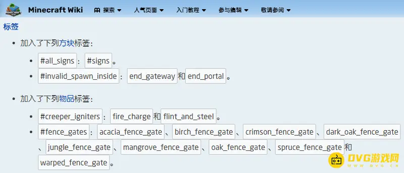 #fence_gates:acacia_fence_gate、birch_fence_gate、crimson_fence_gate、dark_oak_fence_gate、jungle_fence_gate、mangrove_fence_gate、oak_fence_gate、spruce_fence_gate和warped_fence_gate。