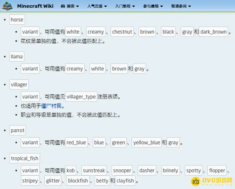 添加子谓词:variant,可用值见villager_type注册表项。也适用于僵尸村民。职业和等级是单独的值,不会被此值匹配上。