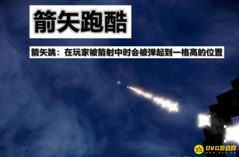4.箭矢跳:严格来说,这是一种“伤害跑酷和击退跑酷”混合的方法。在玩家被箭射中时会被弹起到一格高的位置,故此来跳上2个高的地方。记住,轻射即可,别拉满弦弓!