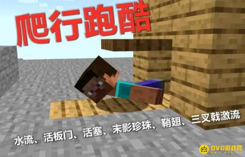 6.爬行跑酷:1.14加入了一个全新的姿势——爬行(其实就是游泳姿势)。玩家可以在一格空间内爬行,进入爬行状态可以利用“水流、活板门、活塞、末影珍珠、鞘翅、三叉戟激流”等等方法。