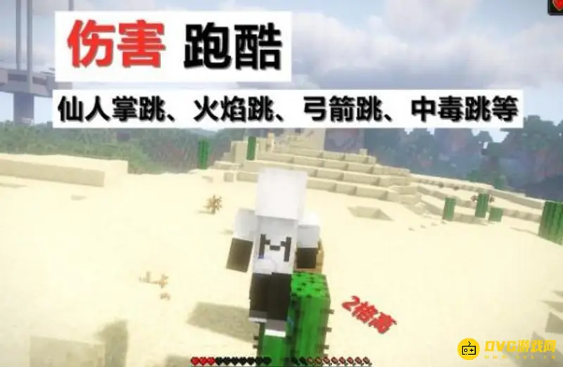 3.仙人掌跳:此方法又名“伤害跑酷”,就是玩家在跳起的瞬间,受到了仙人掌的伤害,受伤的玩家会瞬间又产生一次跳跃。故两次主动和被动跳跃叠加,成功跳上2格高。