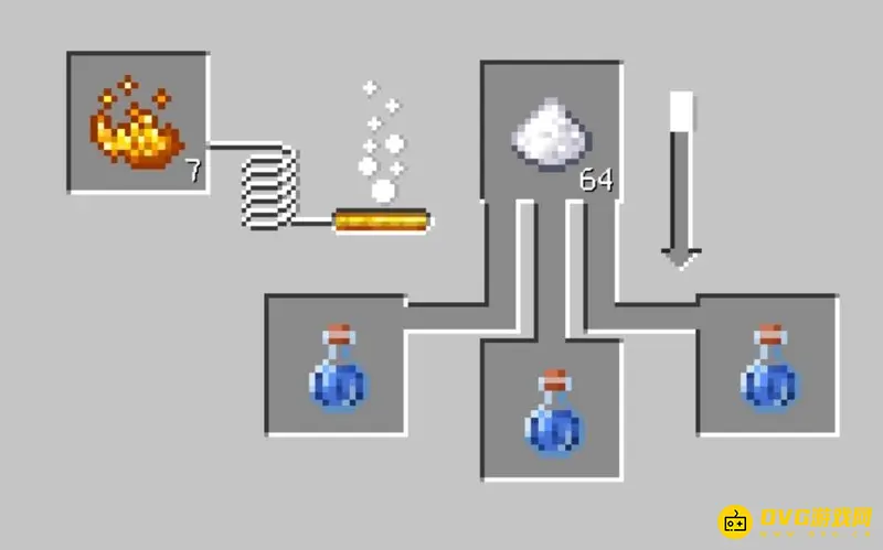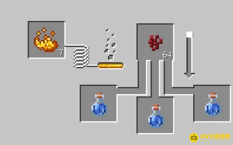 2、左边放置烈焰粉,右边放置下界庞,下面放三瓶药水。制造粗糙的药水。